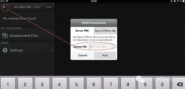 4,在iPad等上打开App,键入Mac Server上的Pin(显示在Mac Server 的界面上)